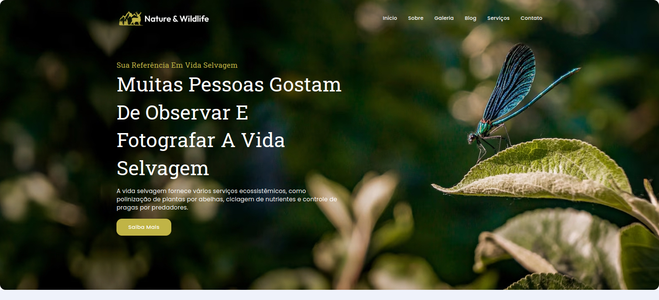 O site "Natureza e Vida Selvagem" oferece um modelo de site ideal para organizações e projetos relacionados à natureza e vida selvagem.