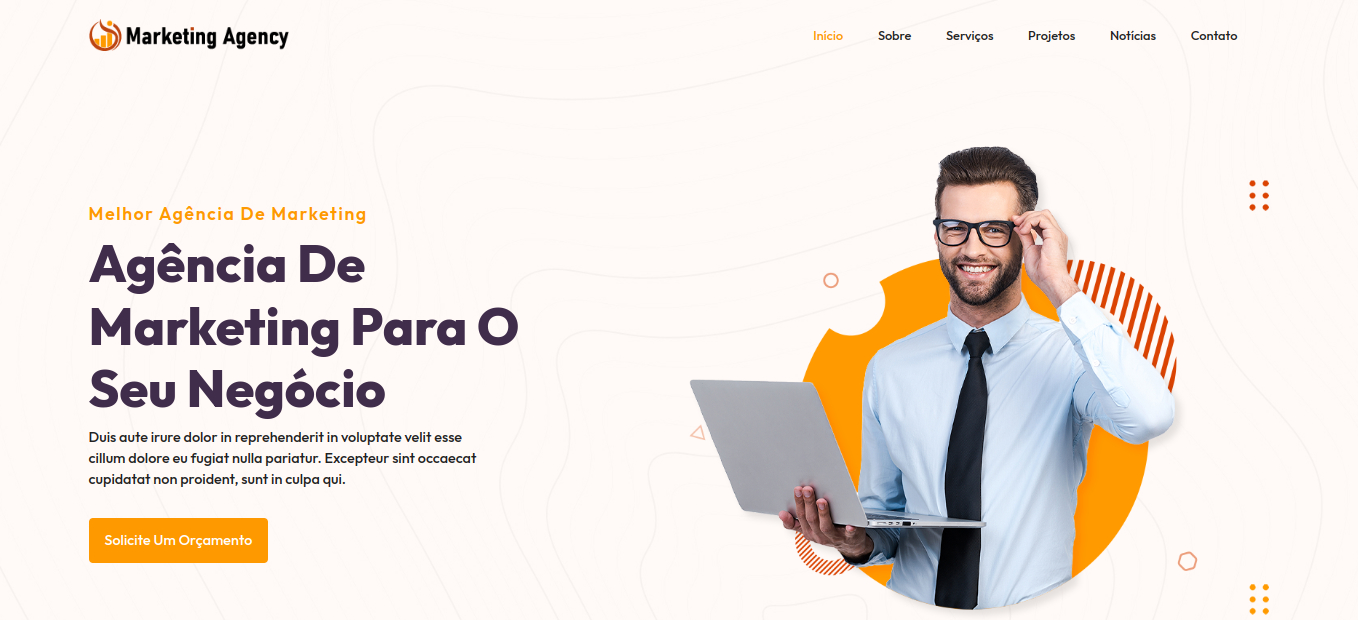 O site "Agência de Marketing" oferece um modelo ideal para agências de marketing.