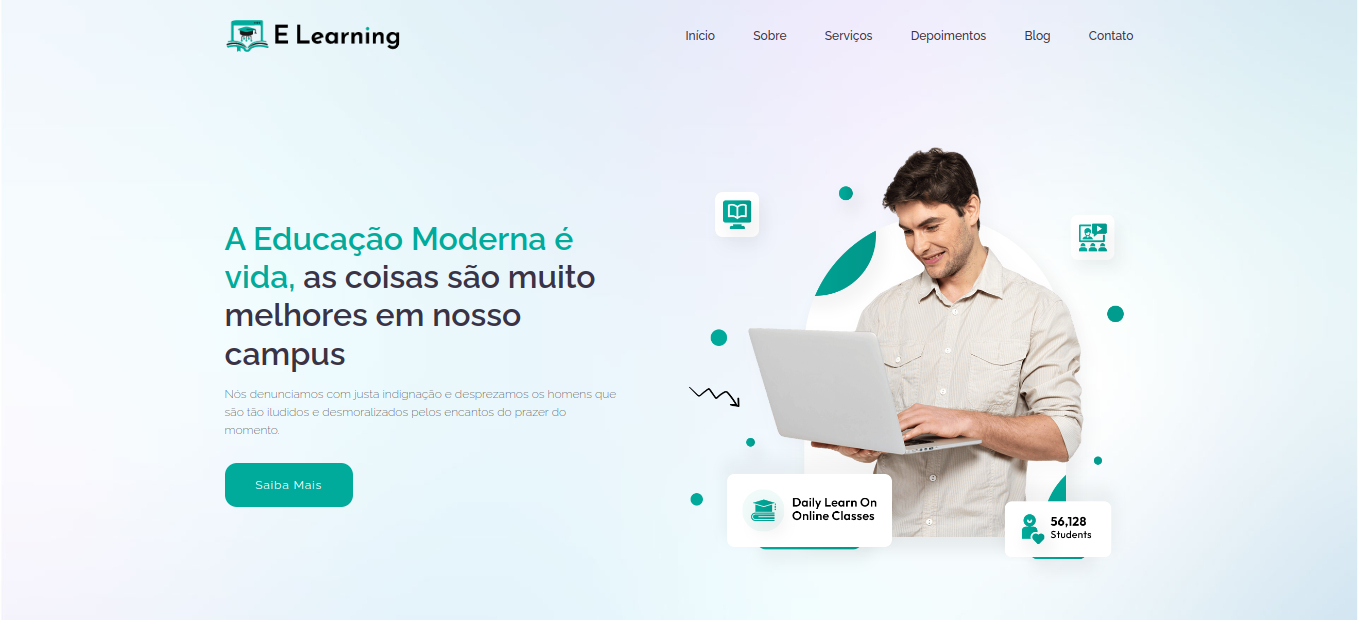 O site "Aprendizado Online" oferece um modelo ideal para plataformas de educação online.