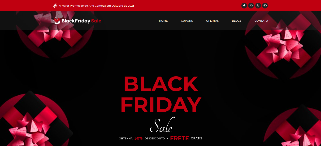 O site "Black Friday" oferece um modelo de site ideal para promoções e vendas de Black Friday.