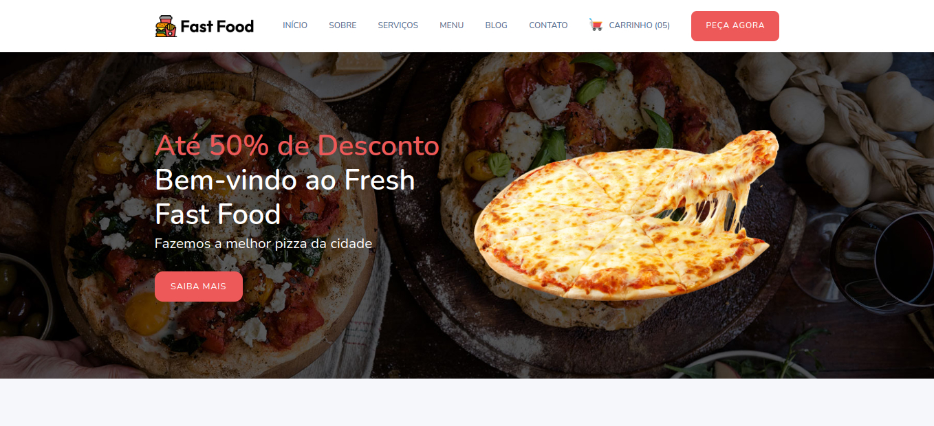 O site "Comida Rápida" oferece um modelo de site ideal para restaurantes de comida rápida.