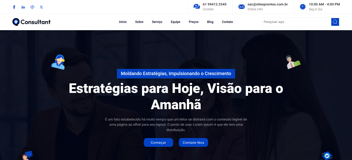 O site "Consultor" oferece um modelo de site ideal para consultores.
