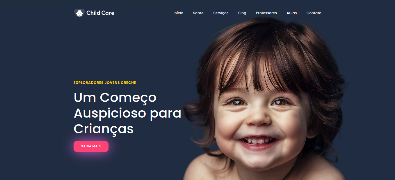 O site "Cuidados Infantis" oferece um modelo de site ideal para serviços de cuidados infantis.