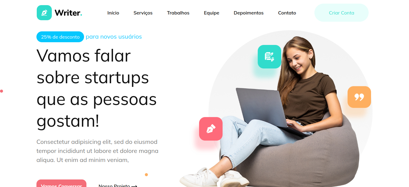 O site "Escritor" oferece um modelo de site ideal para escritores.