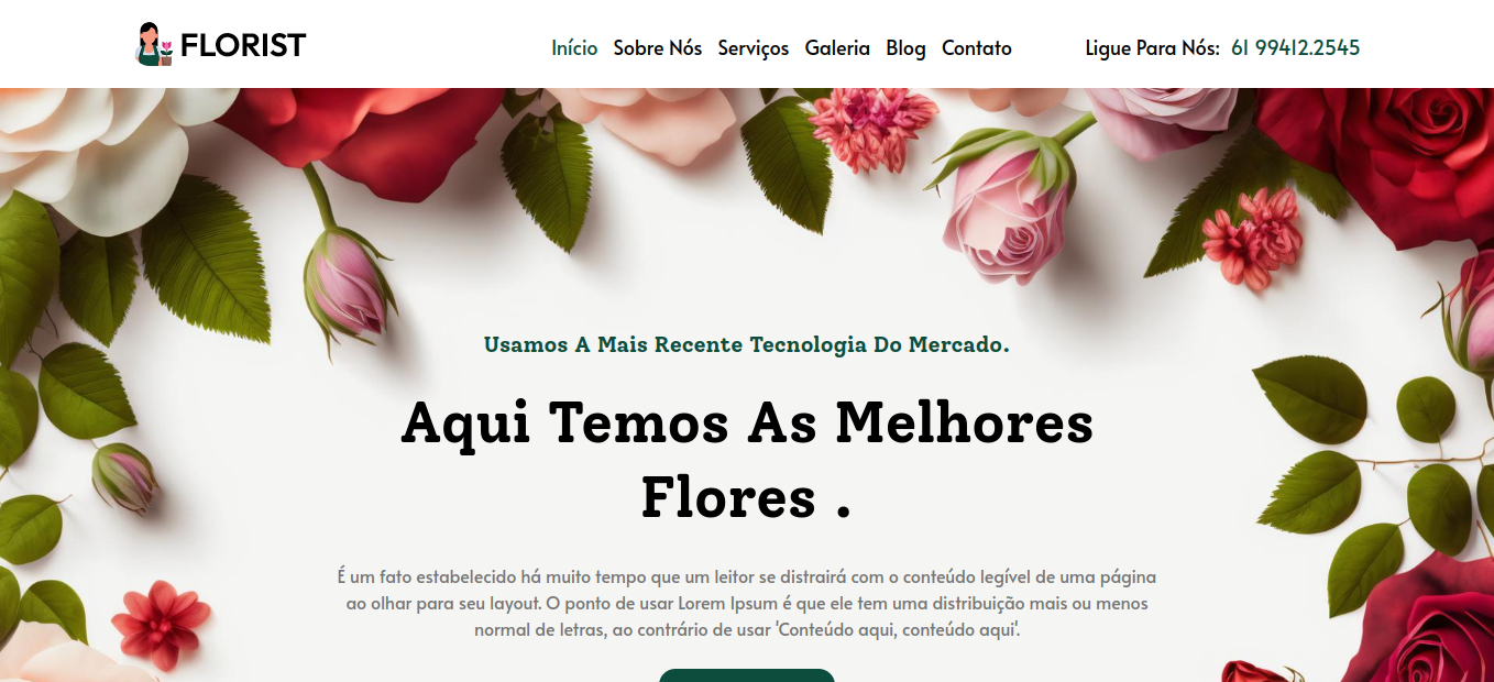 O site "Florista" oferece um modelo de site ideal para floristas.