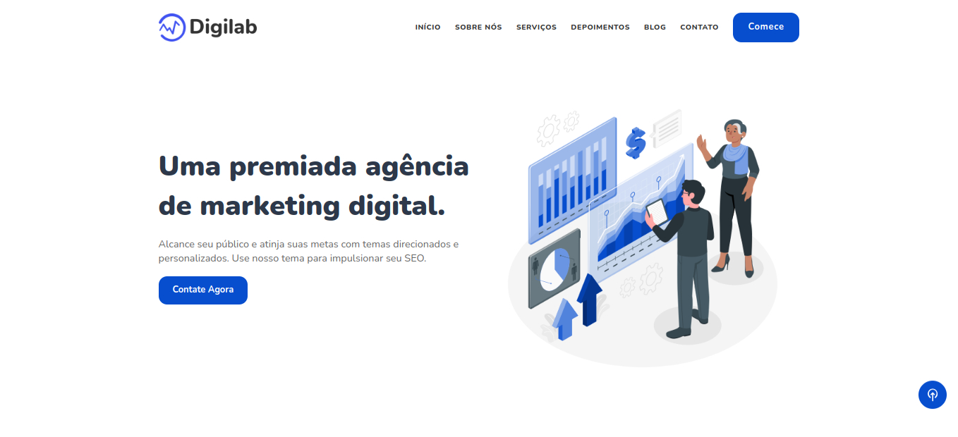 O site "Marketing Digital" oferece um modelo de site ideal para agências de marketing digital.