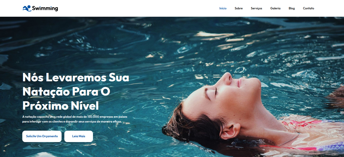 O site "Natação" oferece um modelo de site ideal para escolas e clubes de natação.