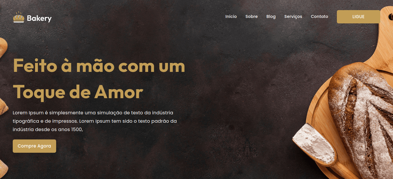 O site "Padaria" oferece um modelo de site ideal para padarias.