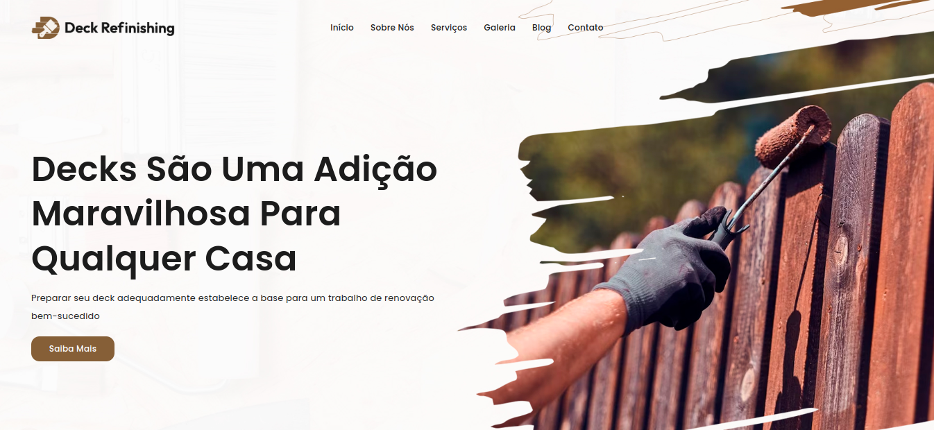 O site "Restauração De Decks" oferece um modelo de site ideal para serviços de restauração de decks. Inclui seções para exibir serviços, depoimentos de clientes