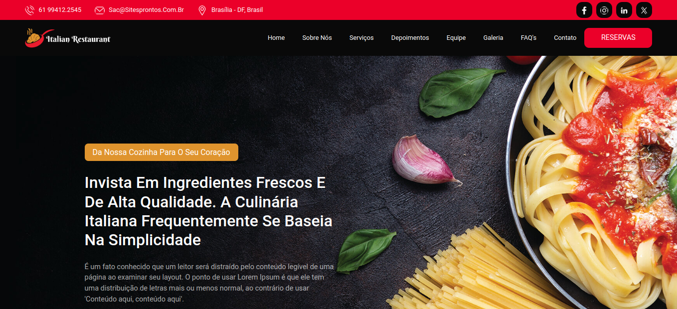 O site "Restaurante Italiano" oferece um modelo de site ideal para restaurantes italianos.