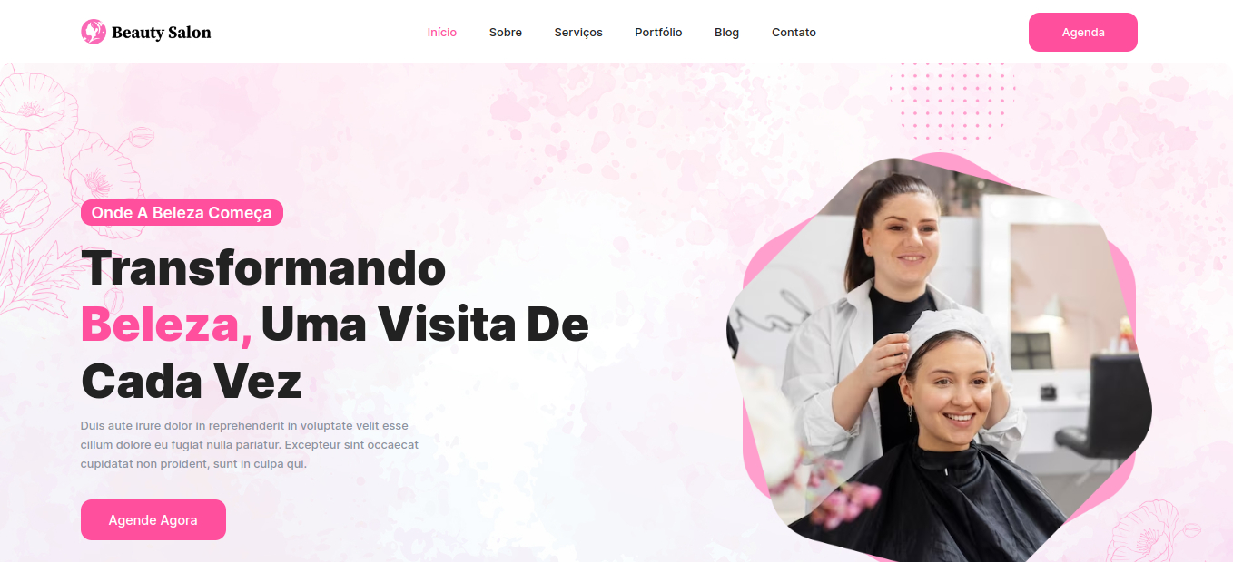 O site "Salão de Beleza" oferece um modelo de site ideal para salões de beleza,