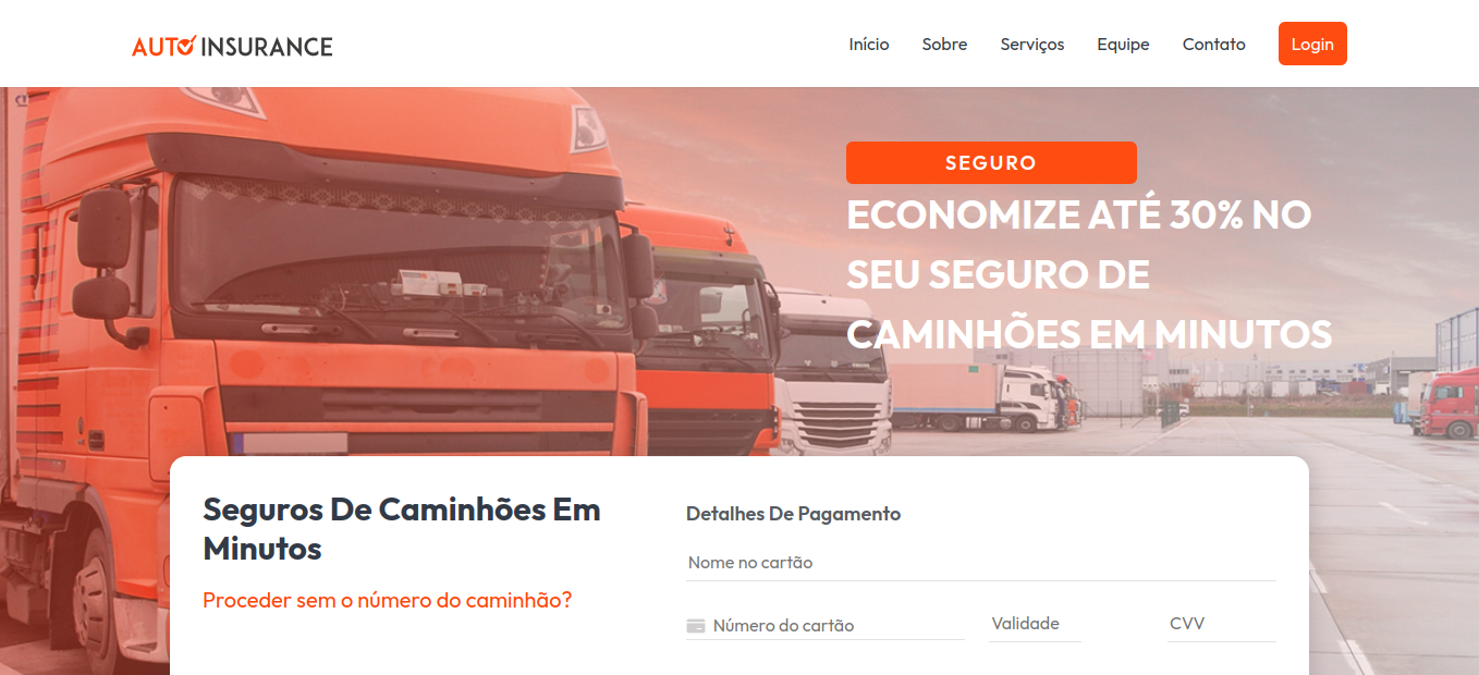 O site " Seguro de Automóveis" oferece um modelo de site ideal para empresas de seguros de automóveis. Inclui seções para listar planos de seguro, depoimentos de clientes, uma área de contato e informações sobre a empresa. O design é moderno e intuitivo, facilitando a navegação e a apresentação das informações.