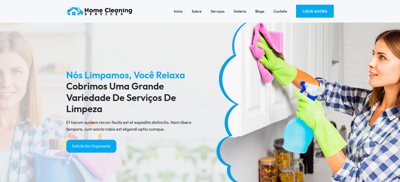 O site "Serviços de Limpeza Residencial" oferece um modelo de site ideal para empresas de limpeza residencial.
