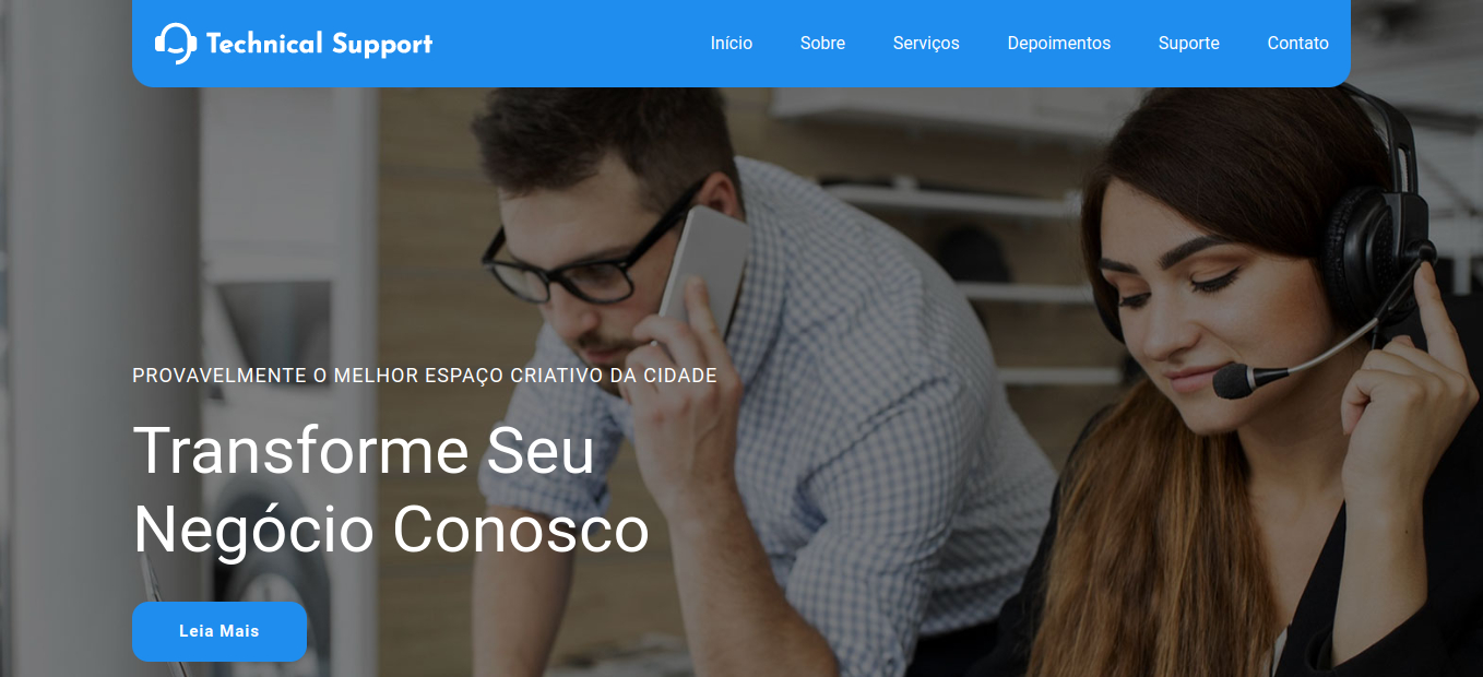 O site "Suporte Técnico" oferece um modelo de site ideal para empresas de suporte técnico.
